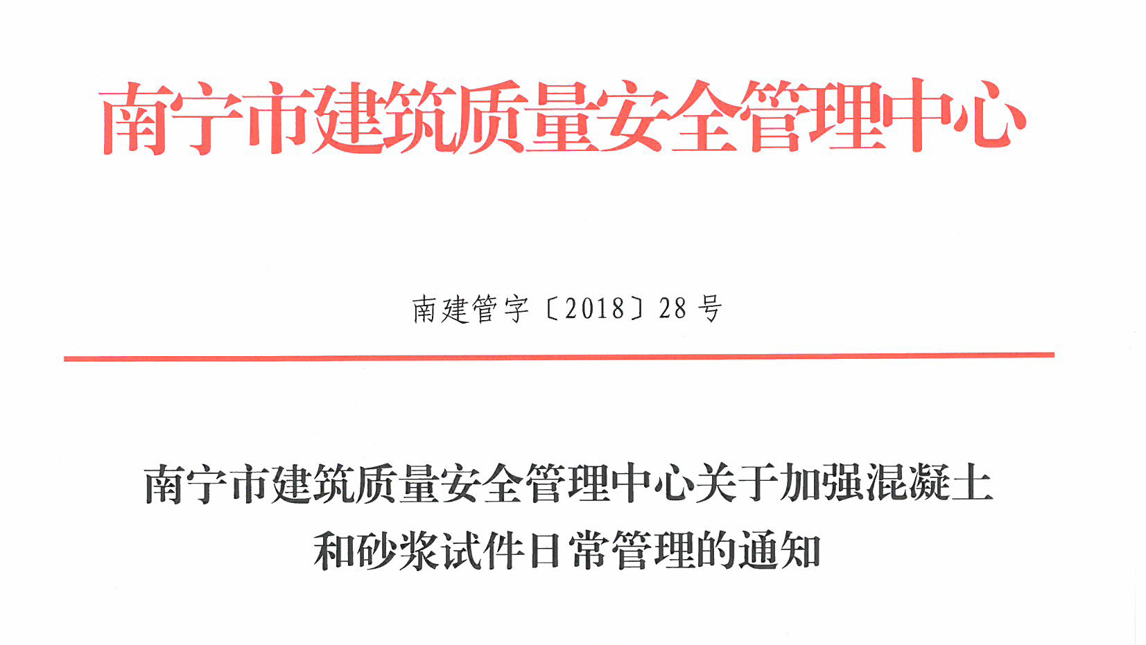 南寧市建筑質量安全管理中心關于加強混凝土和砂漿試件日常管理的通知